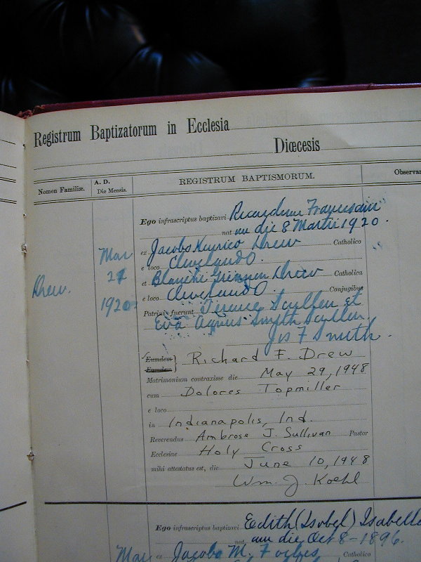 Click on the picture to see and/or import it in full sizeDuring these years the Drew family attended St. Philomena's church; and children went to St Philomena's parish school. The year following the family's move to Cleveland, the seventh and last child arrived. Richard F. Drew was born March 8, 1920 and baptized at St. Philomena's CLICK HERE to read more about the baptism and see some interesting photodocumentation.