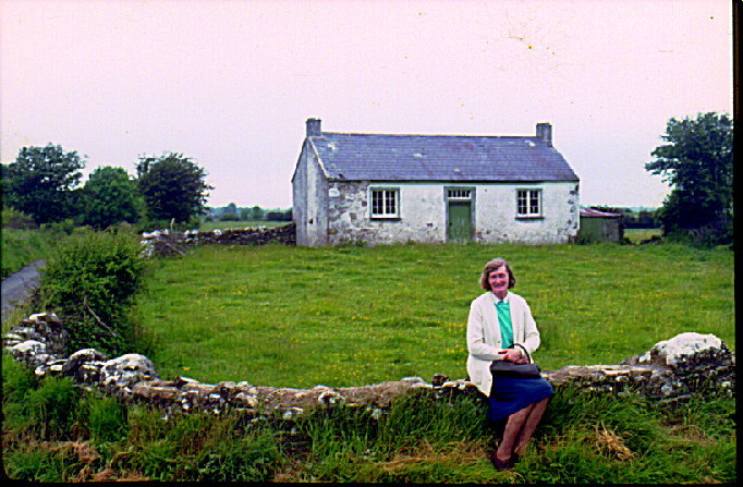 The two unimposing buildings shown above were both built during the pre-emigration days (1830's) of our Westmeath ancestors. John Drew and Rose Reilly and their parents would have witnessed the planning and construction of both buildings. Both were built of cut stone; and, most likely, our ancestors were involved in the quarrying, transporting, and laying of the stones. The family attended this church; and the children (including James Drew, our great grandfather) would have attended this school until their emigration in 1847. Emper chapel (left) is still in use as of the year 2000. In the 1971 photo at right, our distant (4th) cousin, Anna Mary Drew, sits atop the stone wall that surounds the "schoolyard" of Iristown school where she attended school in the 1920's. By 1971, the school had long since closed and was replaced by a more modern school at Milltown.