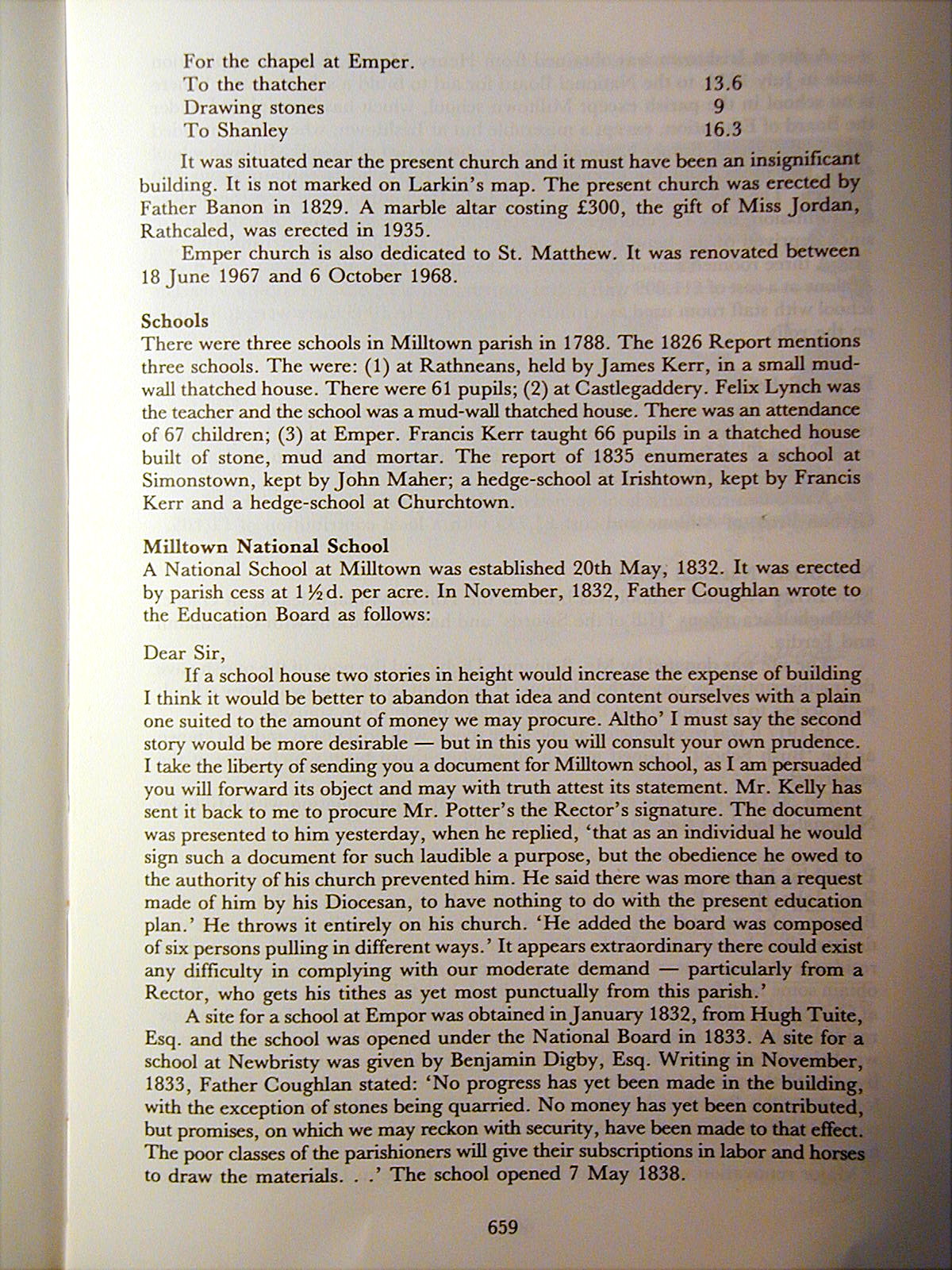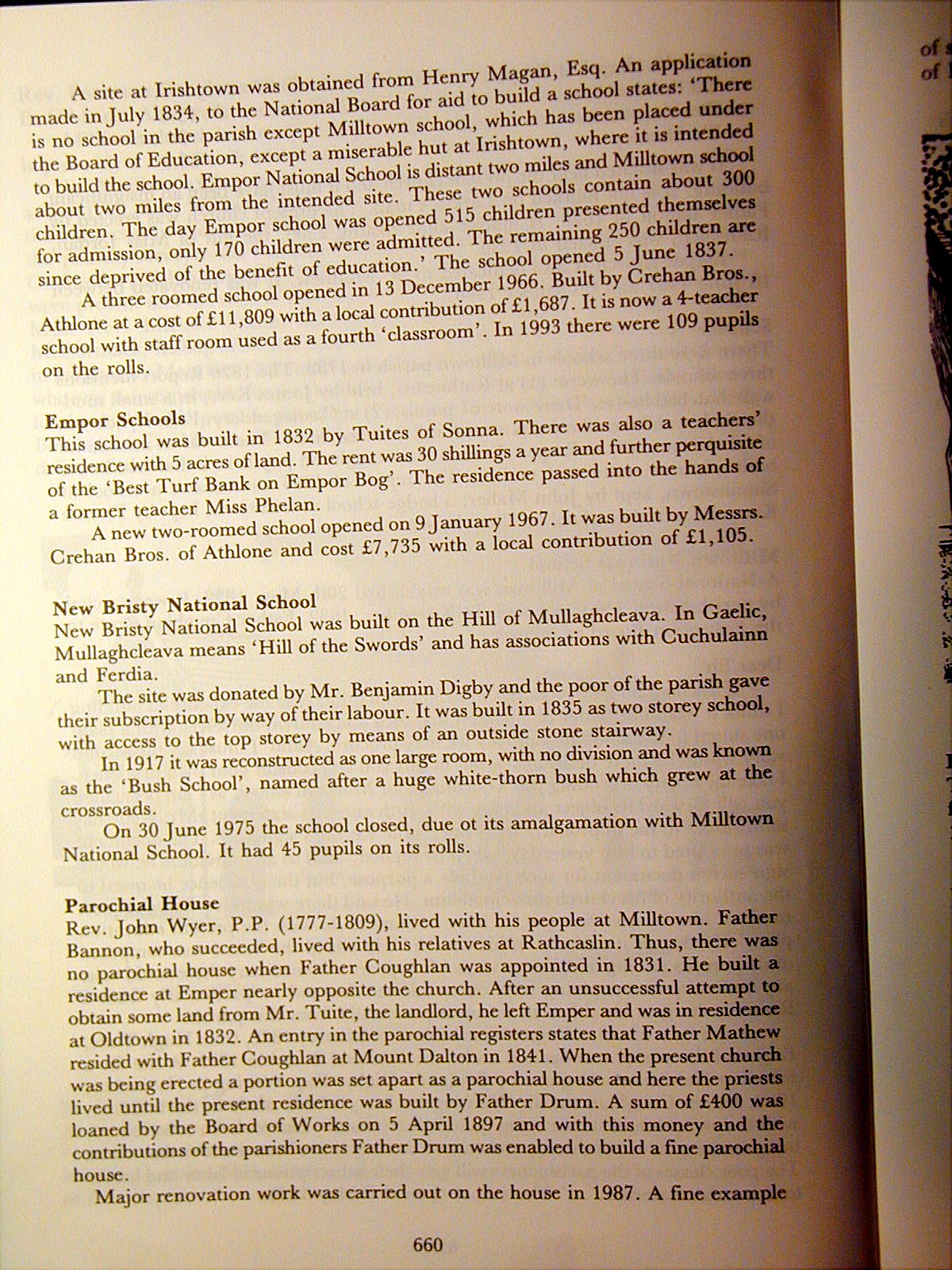 The photographed pages below are from a history of Westmeath and give interesting information about both Emper Chapel and Irishtown School. --DCD