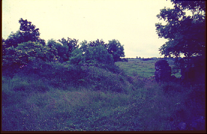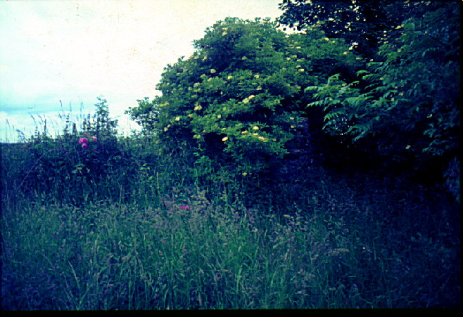Another view of the ruins at Lakenstown. One sees here how the roses and other flowers had grown up around all the old stone foundations and ruins. The red ones are known as "wild Irish roses" and we were successful in bringing some back to the USA during our Sept. 2000 trip. If they grow well in Indiana, we shall make them available to all the Drew descendants. We will have to wait and see if they survive the harsh Indiana winters.