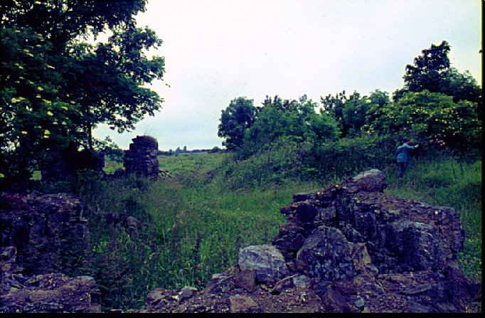 THE "RUINS" AT LAKENSTOWN This photo (and the next several) show the "ruins" or remaining stonework foundations of what was once a thriving community 200 years ago. Several of these homes were built and lived in by Drews. This photo shows more of the typical Westmeath countryside in the background. Besides general farming, the surrounding "peat bogs" provided a major industry in the area. Men were hired to dig the peat from the upper layers of the earth... much like strip mining. The peat would then be shipped away and sold for fuel... just like coal.