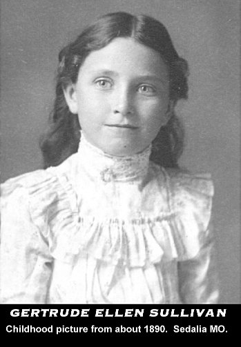 Gertrude is shown here, at right, at about age 13. Actually, her mother was first cousin to James "Harry" Drew, but because of "circumstances" [Gertrude was an "oldest child" and James H. was a "youngest"] they were just a year apart in age... and hundreds of miles in geography... but they knew each other well.