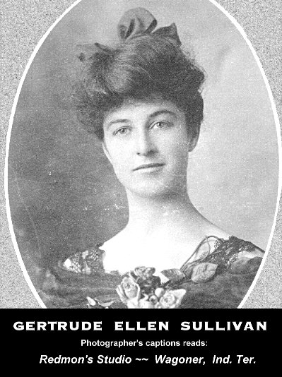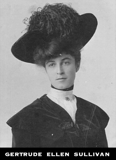 In time, Gertrude Ellen Sullivan and her children, grandchildren, and decendants will warrant a separate web page. Until I am better organized and have more information we will have to be satisfied with the FABULOUS collection of pictures the James family has collected. In fact, there were so many awesome photos of this woman, I had a hard time picking out the best ones to pass on in digital format. This cousin of James H. Drew and our parents was obviously a beautiful woman... and tradition has it that people "loved" to take her picture. It is also a tradition that she "loved" to have her picture taken! Tradition also has it that she "sowed some wild oats" in her day; [as some of the photos suggest] but the James family has not yet let us in on the details. Since this is a photo based history, I feel obligated to post these pictures even though we do not have a complete history researched and prepared to accompany them. I am posting the photos in full size and resolution; but, because they are such AWESOME photos and some of them a century old, I think it will be worth the time it takes to import them in the year 2000... realizing, of course, that our grandchildren will be able to import such things in the blink of an eye. |