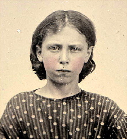Click on the photo to see it full size This photo shows Rose Ann McGee at about age 15. Born in 1855, she was the eldest child of Catherine Drew McGee and William McGee. |
