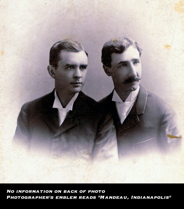 It is surmised that these two young men might be the sons of Julia Ryan Kruger, and therefore brothers to Blanche Greenen's cousin and "soulmate" Ruby Krueger. The photo was found in a collection handed down from Blanche to here children; so it was a prevailing assumption for a while that this photo shows two Greenen brothers. More recently it has become clear that they are NOT Blanche's brothers; but the fellow at right (with the handle bar mustache) shows up in other photos with Ruby Krueger. Estimated date of the photo is 1895 - 1900. Unfortunately, as of August 2001 there is no documentation regarding Ruby's siblings... and therefore this photo remains a mystery.