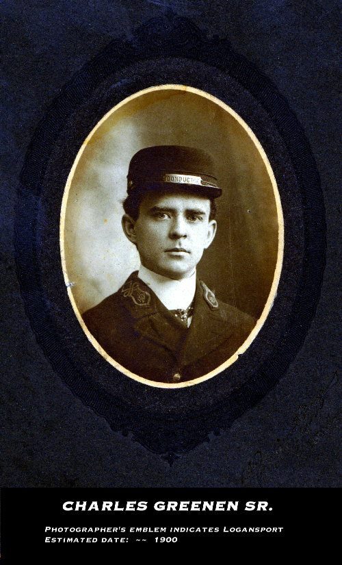 This is Charles Peter Greenen; eldest son of "J.W." and Sara "Katie" Ryan Greenen. Someone probably labelled the back of the picture after Charles Dewenter Greenen was already an adult... and the "Sr." thing was needed to distinguish the two "Charlie Greenen's"