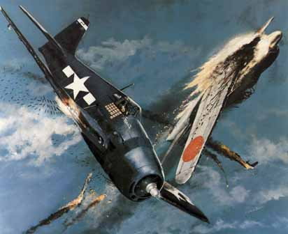 This painting, well known to WWII veterans, shows a Hellcat in action, destroying a Japanese "Zero." Although we are only looking at a painting, "Uncle Tom" could well have seen such action; and the painting represents, for me, Tom's valor as later documented by his squadron mates.